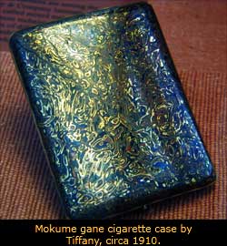 Fast forward to USA, mid-1970's). Interest in historic methods of knifemaking, especially damascus steel, was at an all time high. Research at Southern Illinois University at Carbondale was combined with traditional Japanese methods researched by Gene and Hiroko Pijanowski to produce the basis of contemporary mokume-gane. This new material was superior to both the traditional Japanese mokume and the soldered composite metal of Tiffany's, in terms of soundness and variety of metal combinations.