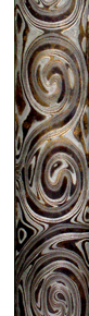Technical Information for nickel silver/bronze mokume-gane (NS/Br)Shining Wave Metals, a commercial producer of mokume-gane since 1984, now offers a line of this material that specifically meets the needs of knifemakers. The Knifemaker's Line is composed of nickel-silver and a red bronze to meet the maker's need for a mokume with a combination of a bold pattern, high strength, good formability and good machinabilty. Note: Nickle Silver/ Bronze Mokume (NS/Br) contains the metal nickel, known to cause cancer in laboratory animals. Some indiviguals may experience allergic reactions in the form of rashes or other irritation. Avoid inhaling the dust while working the metal. A high degree of skin contact is not recommended. This product may not be used for jewelry in the European Economic Community (EEC). (Click a subject to expand text) ForgingThis mokume -gane will work similarly to nickel-silver. It may be cold forged, with a 30% reduction between annealing. This material may be hot forged, but doing so will void the warranty. Start hot forging at about 1400°, a medium red, and stop at a black heat. Be sure to avoid heat fatigue by working the metal sufficiently during each heat. MachiningThis material machines differently than leaded brass, the standard for copper base metals. Most bronzes are somewhat mushy and grabby on the tools, if difficulty is encountered machining Knifemaker's Mokume, try the following: